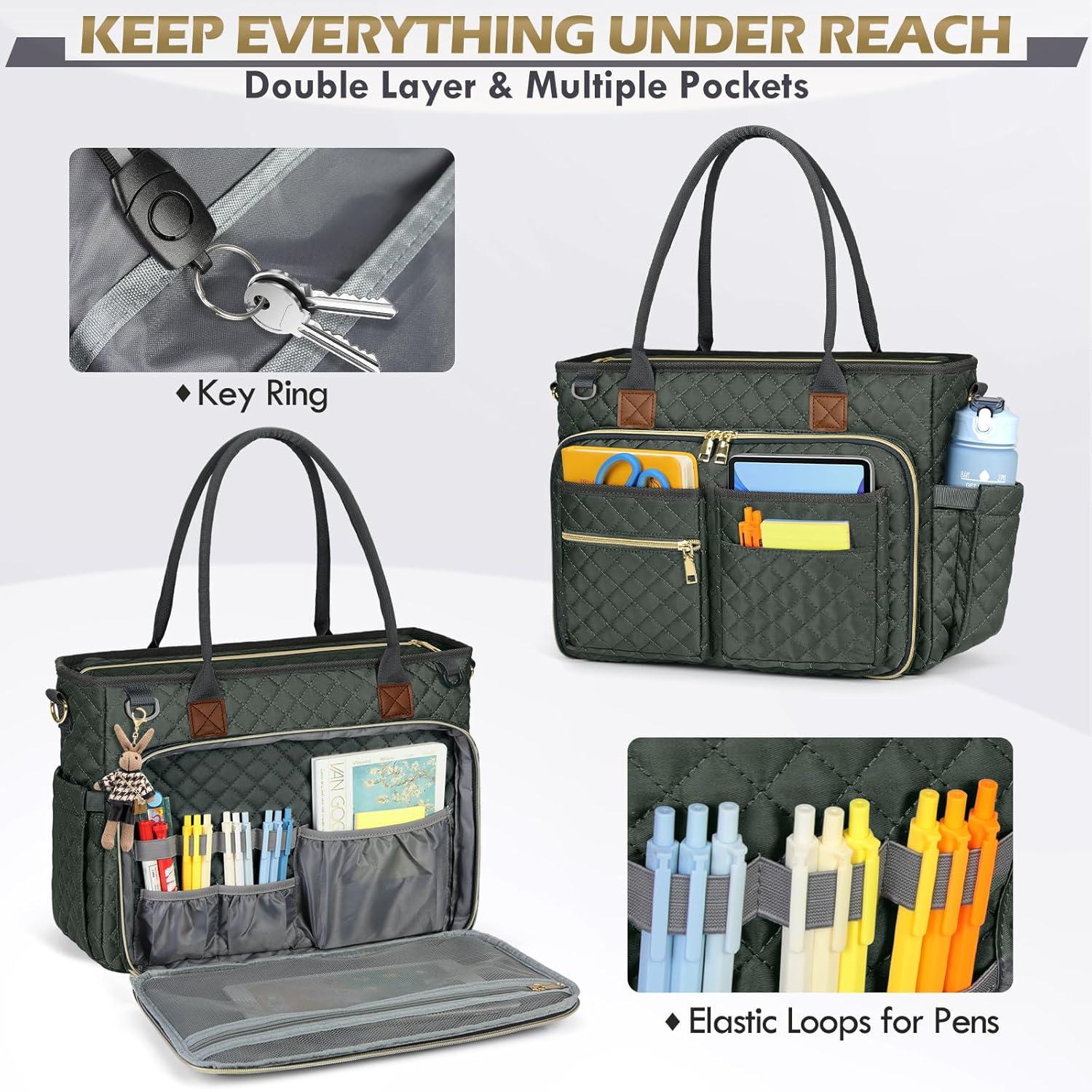 IDEAL GIFT CHOICE- Laptop tote with combined elegant appearance and practical design. Large capacity and multiple storages make it a great choice to use as a teacher bag, nursing bag, professional work bag, business travel bag, or weekend getaway carry-on bag. Perfect for commuting teachers, tutors, nurses, business ladies, etc. Ideal gift for teachers, nurses, and parents, on any holidays, birthdays, or anniversaries. And also ideal Teacher Appreciation Gifts