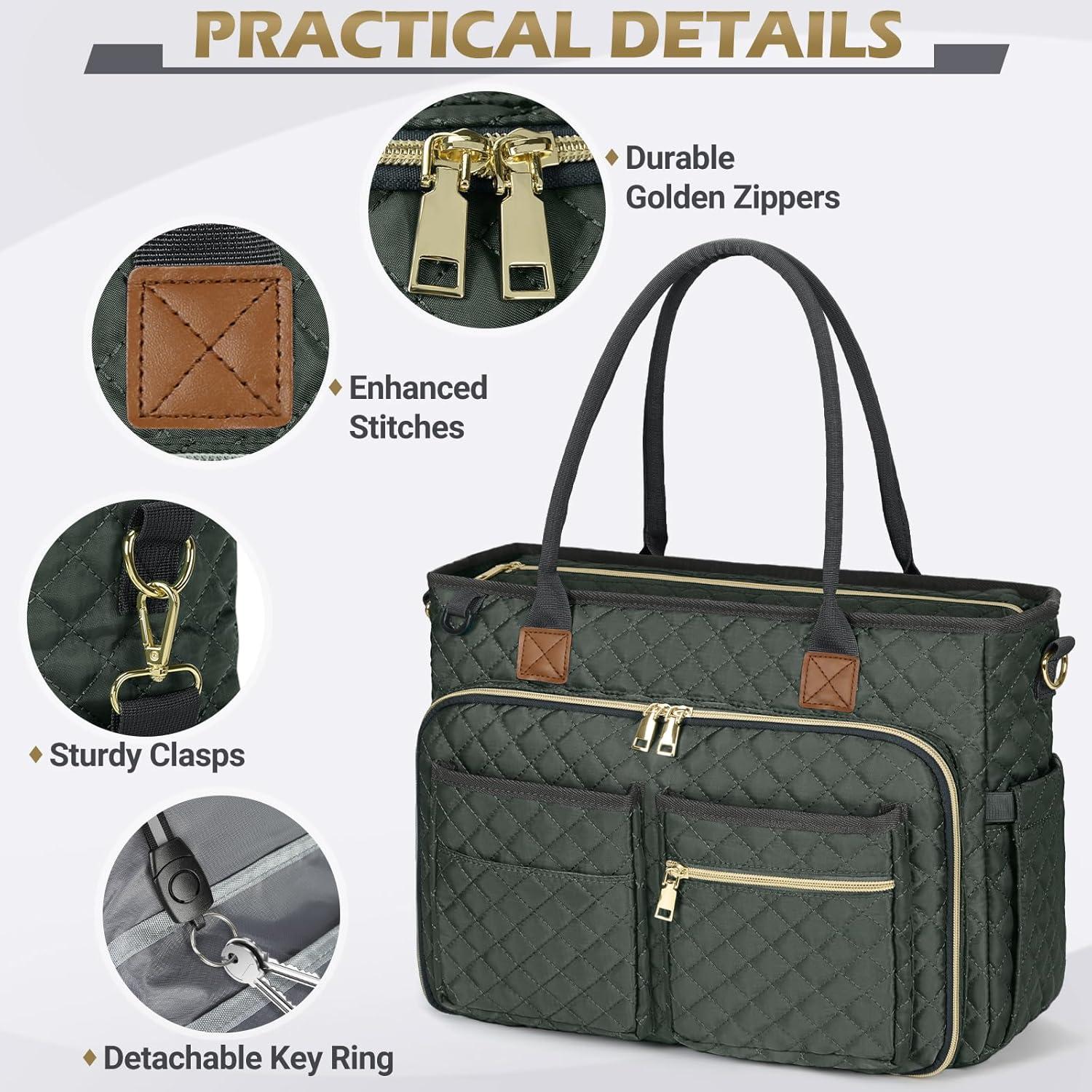LONG LASTING MATERIALS- Made of durable water & scratch resistant polyester fabric, with smooth golden zippers, sturdy handle, and adjustable padded shoulder straps, nurse work bag prefect combination of stylish and functional. Reinforced stitching at each stress point ensures the laptop briefcase durability for long-term performance. High quality quilted teacher laptop tote bag aims to provide a sturdy and reliant user experience