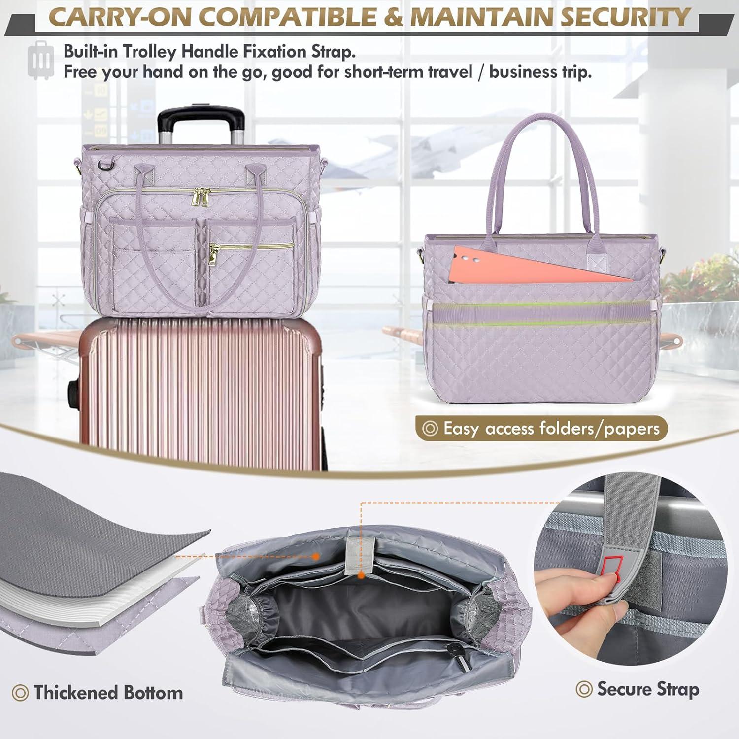 CONVENIENCE DESIGN FOR TRAVELERS- The luggage strap in the back allows this women tote bag to slide over the luggage tube, to free your hand on the go. The standard size of this women laptop bag makes this a good airplane travel bag, it is able to fit in the overhead bin and under seat space. The laptop bag for women also provides multiple ways of carrying, it can serve as a shoulder bag, office bag, laptop carrying bag, or laptop cross-body bag